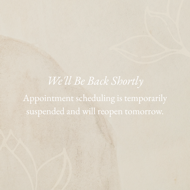 Our appointment system is taking a short pause while we prepare to welcome you with renewed energy and care. Tomorrow, we’ll be here again, ready to guide you toward your next experience of calm and restoration.